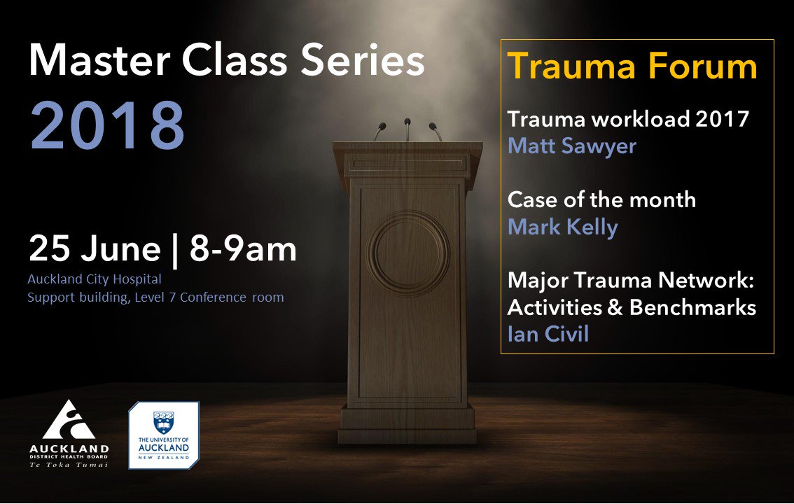 Auckland Surgery On Twitter Master Class Tomorrow Topic Trauma Forum Led By Ian Civil 8 9 Am Monday 25 June L7 Conference Room Support Building Auckland Hospital Https T Co Wmipt7bn7n