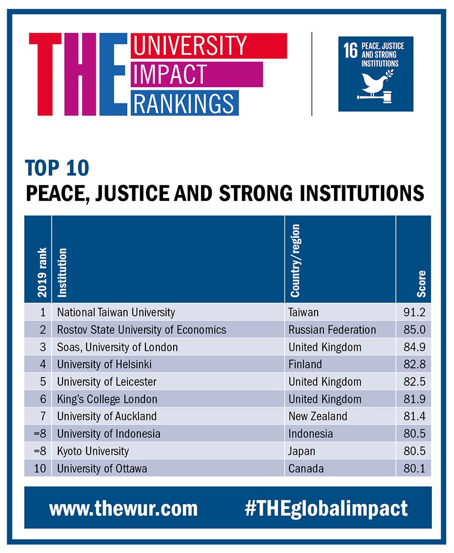 World Uni Rankings On Twitter Which Universities Are Making The Most Positive Impact On Peace And Justice Explore Our Theglobalimpact Ranking On Sdg 16 Https T Co Ylzkbnbkar Theunirankings Https T Co Ojxxyvjnew
