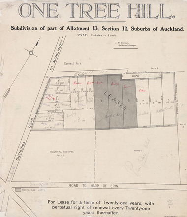 One Tree Hill Subdivision Of Part Of Allotment 13 Section 12 Suburbs Of Auckland Collections Online Auckland War Memorial Museum