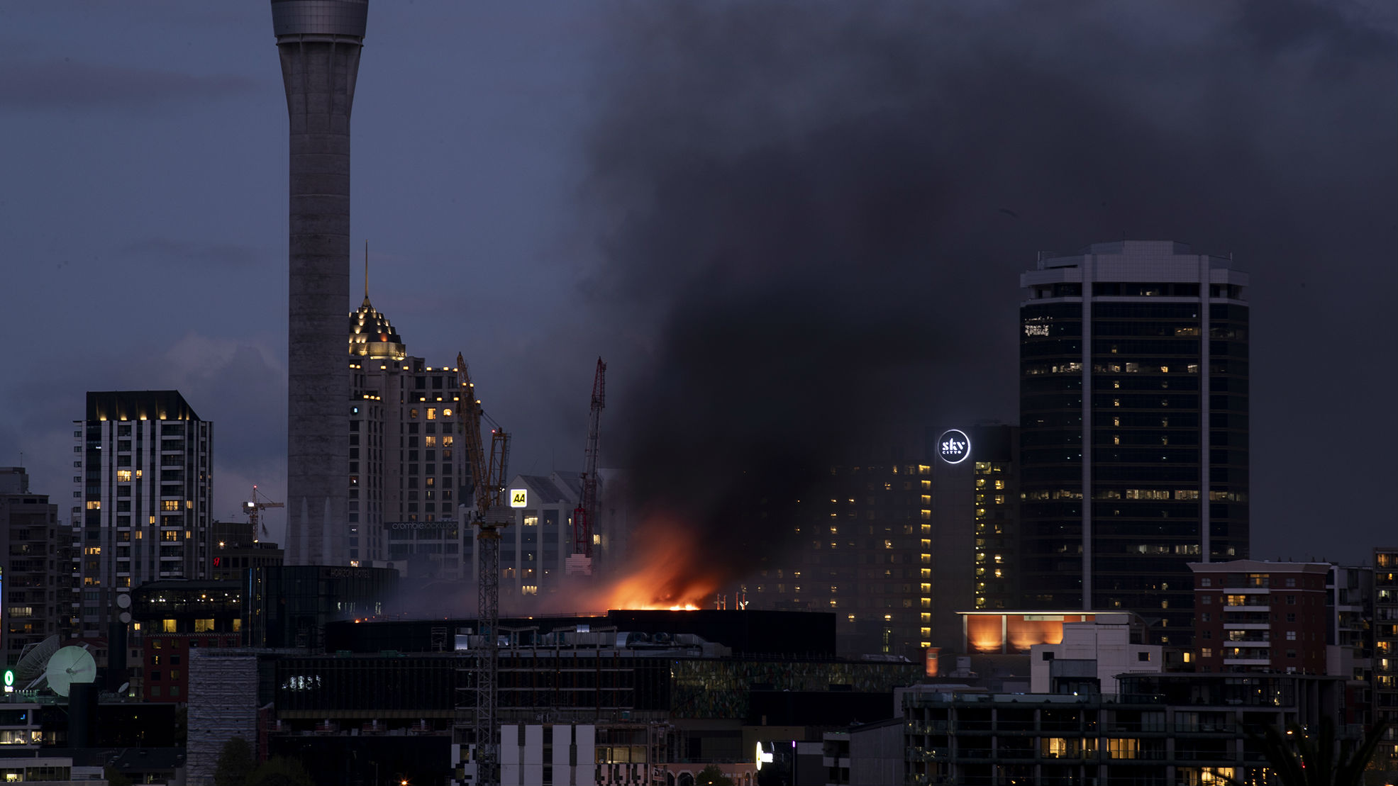 Watch Timelapse Footage Shows Fire Rip Through Skycity S Convention Centre Building Site 1 News Tvnz