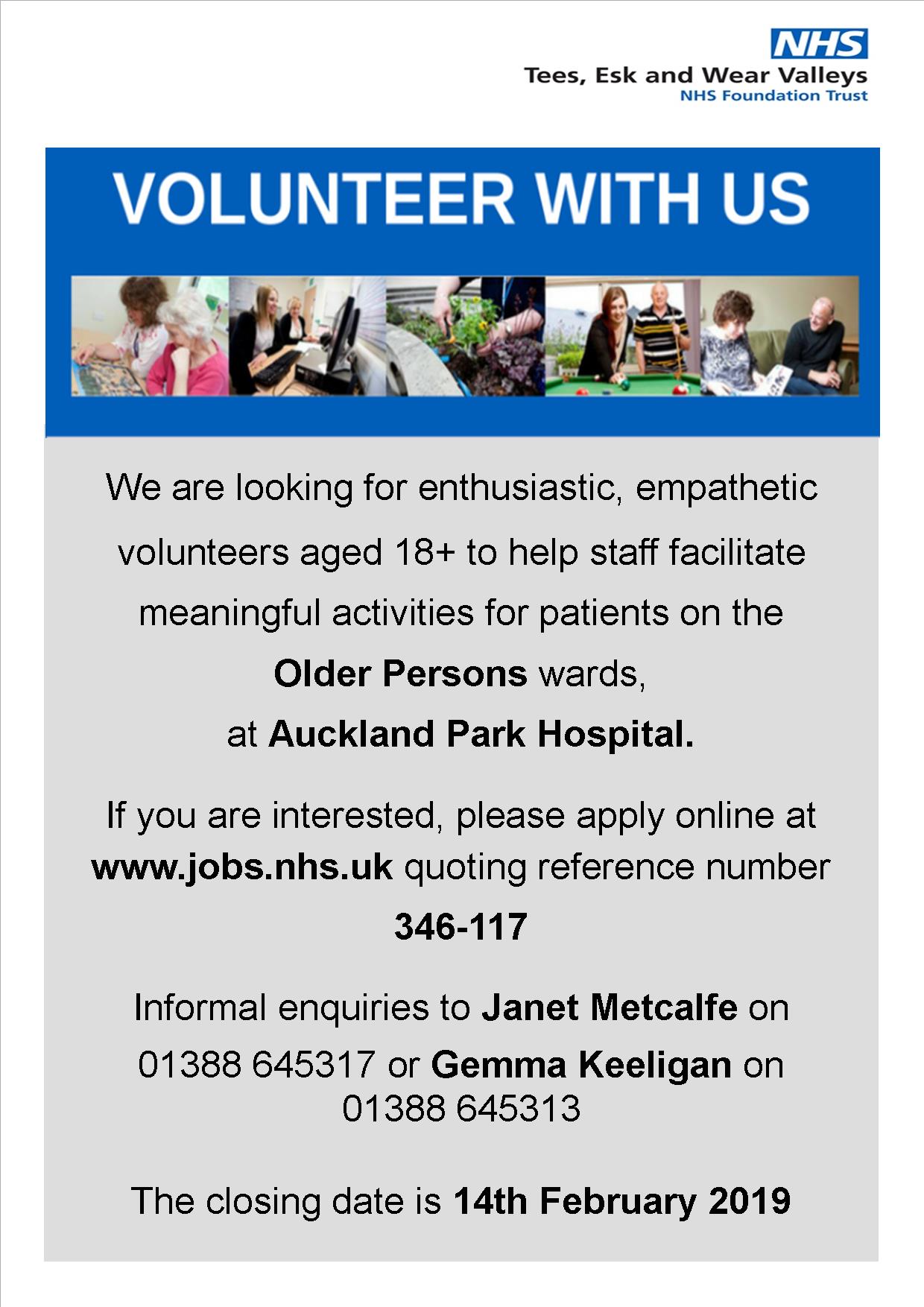 Tewv On Twitter New Volunteer Opportunity We Are Looking For Volunteers To Help On Our Older People Swards At Auckland Park Hospital Bishop Auckland Visit Https T Co Gh6dcantb5 Ref 346 117 Closes 14 02 2019 Tewvvols Bishopauckland